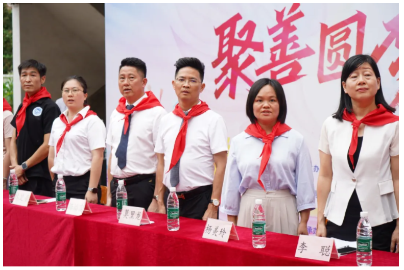 全体人员肃立,面向冉冉升起的五星红旗,奏唱国歌。庄严的升旗仪式,将家国情怀与助学大爱紧密相连,奠定了活动庄重而充满希望的基调。