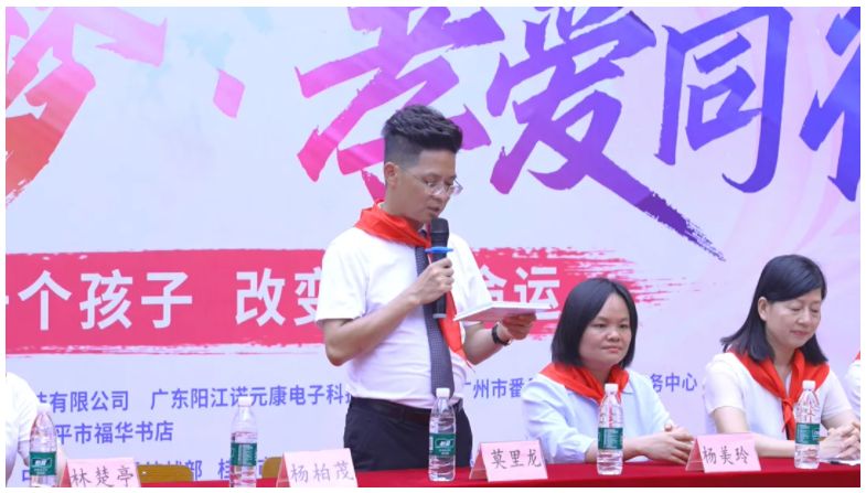 莫董深情回顾了孩子们为嘉宾佩戴红领巾的温暖瞬间,指出红领巾象征着希望,而这希望,需要社会各界共同托举。他特别强调了健康对于家庭和学子的重要性,点出“一病毁三代” 的深刻警示,呼吁大家在关注教育的同时,更要关爱自身及家人的健康——唯有健康的体魄,才能支撑孩子们走向更广阔的未来;唯有稳定的家庭,才能为他们的梦想保驾护航。