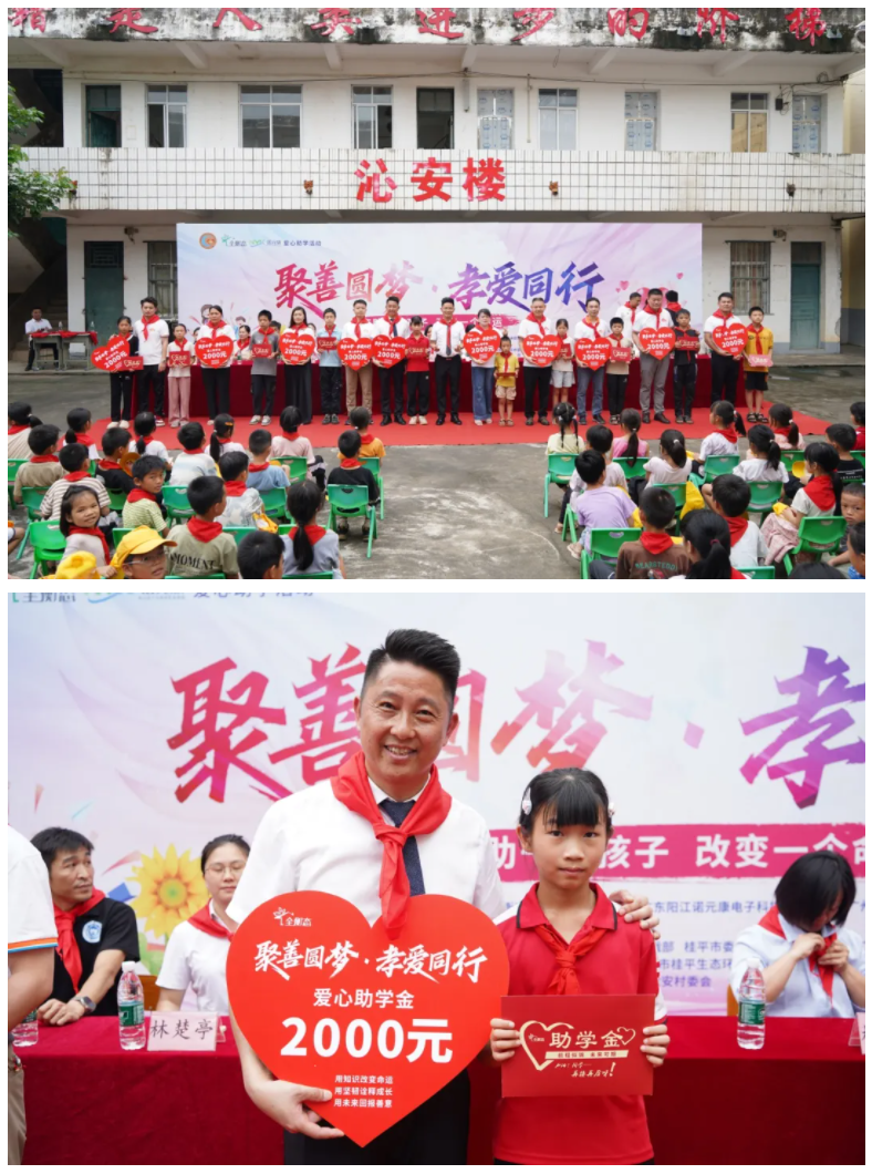2025年6月19日下午,炽热的阳光洒满桂平市社坡镇太安小学的操场,与师生们脸上的期待交相辉映。继上午木根镇东石小学的温情涌动,全衡态再度携手爱心公益机构,将“聚善圆梦·孝爱同行”的爱心火种,精准传递至太安小学。“资助一个孩子,改变一个命运!” 的誓言,在青山环抱的校园里,激荡出更深远、更坚定的回响。
