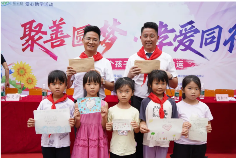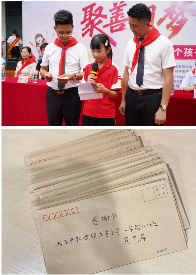 捐赠环节后,活动迎来了最纯真动人的一幕——学生送感谢信。孩子们手捧亲笔书写的信件,走到全衡态莫董和杨总面前,将这份最质朴、最真挚的感激之情亲手递上。